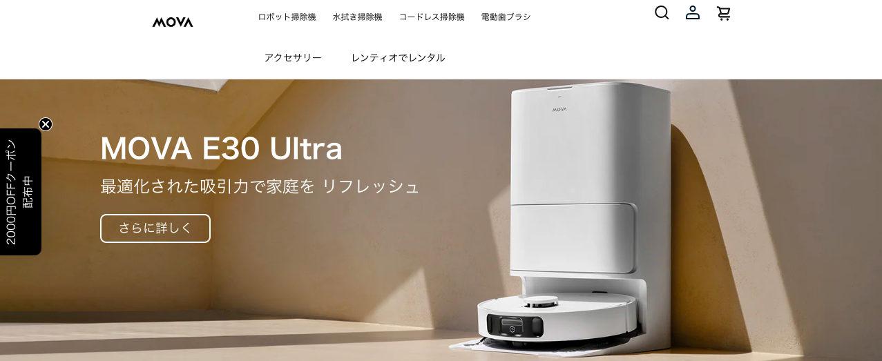公式サイトはこちら MOVA JPについて 2024年9月に日本初となる新ブランド「MOVA(ムーバ)」を発表しました。 同ブランドは「生活を豊かにし、無限の可能性に満ちた未来を切り開くこと」を目標に、今後さまざまな製品を日本市場に展開していく予定です。 その先駆けとして、ロボット掃除機「MOVA E30 Ultra」と乾湿両用コードレス掃除機「MOVA K10 Pro」の2製品が発売されました。 商品名 MOVA JP カテゴリ 家電